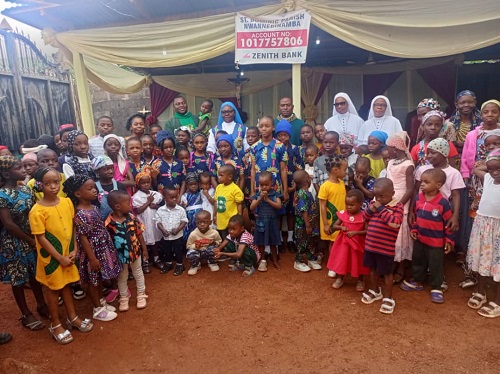 It was a joyful day yesterday at St. Dominic Parish, Nwanne di n’Mba, Emene, as the Director of the Pontifical Missionary Societies (PMS), Rev. Fr. Engr. Francis Agu, together with the Diocesan Holy Childhood Association (HCA) Coordinator, Sr. Sochinwe Chukwu, DDL, formally launched the Holy Childhood Association in the parish.